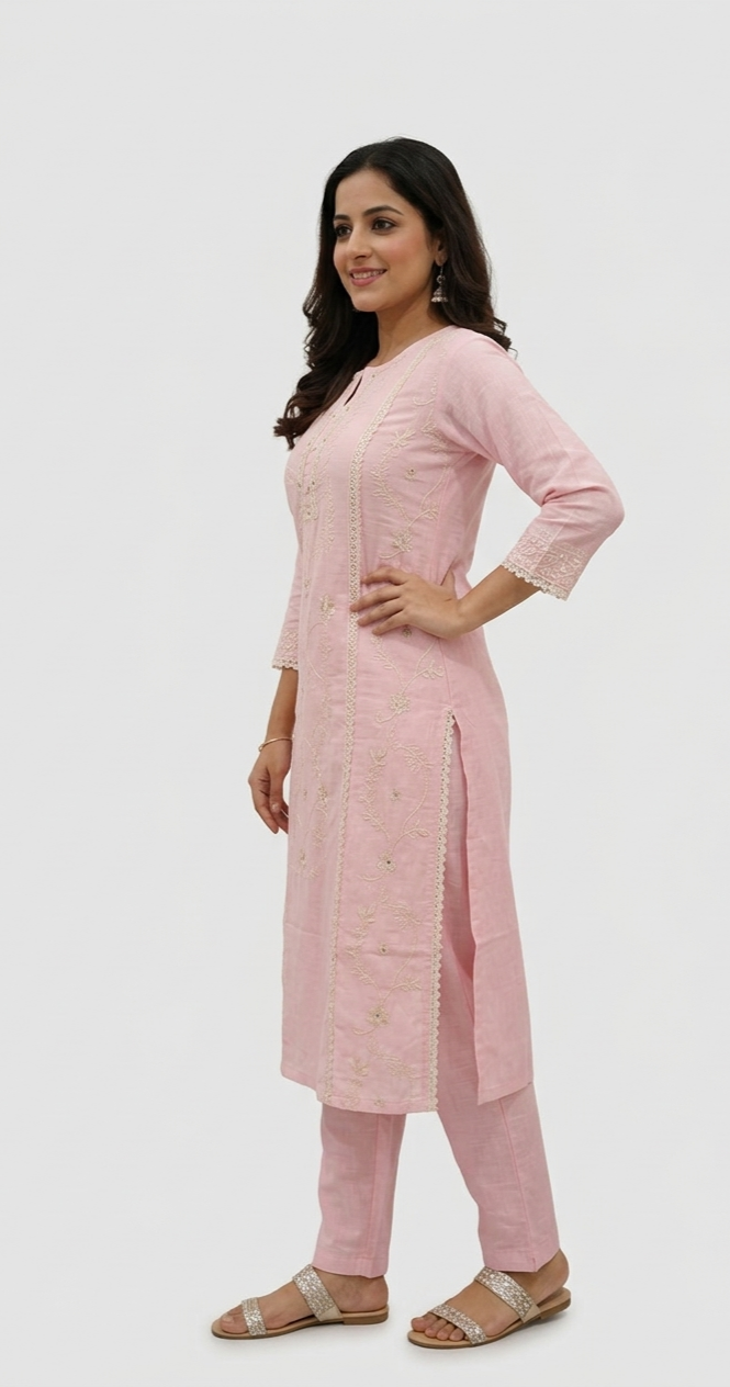 The kurta front features exquisite white embroidery and subtle shimmer details.