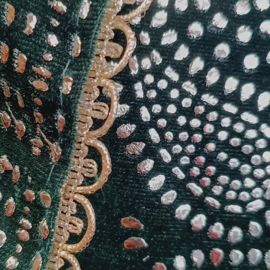 - Rich deep green velvet shirt beautifully embellished with heavy golden stone work in traditional motifs, giving a royal festive look.