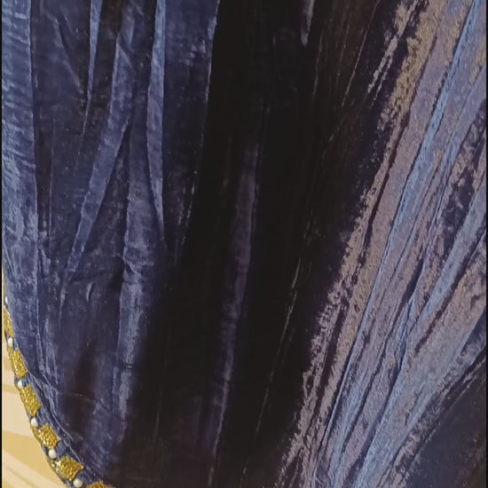 DH285-Royal Blue Velvet Three-Piece Suit with Embellished Dupatta