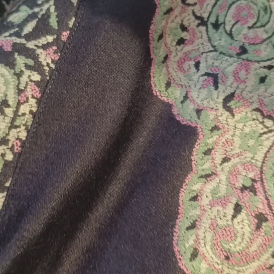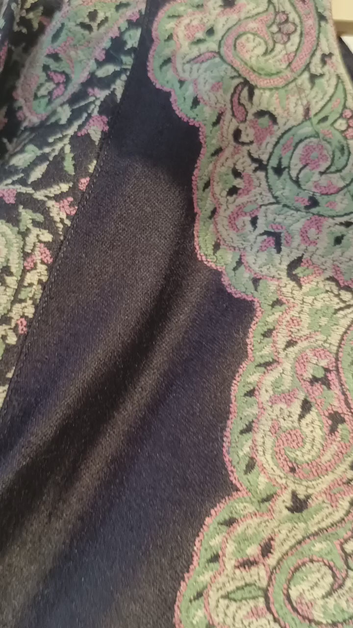 This black Kashmiri Pheran is adorned with exquisite traditional Tilla embroidery, reflecting the rich craftsmanship of Kashmir.