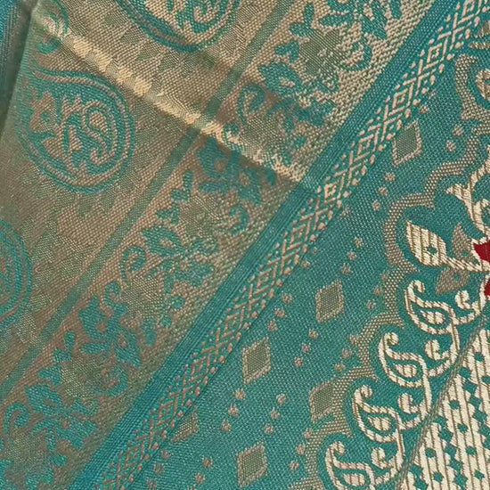 - Comes with a luxurious woven jacquard dupatta adorned with intricate borders and paisley designs, adding a regal finishing touch.